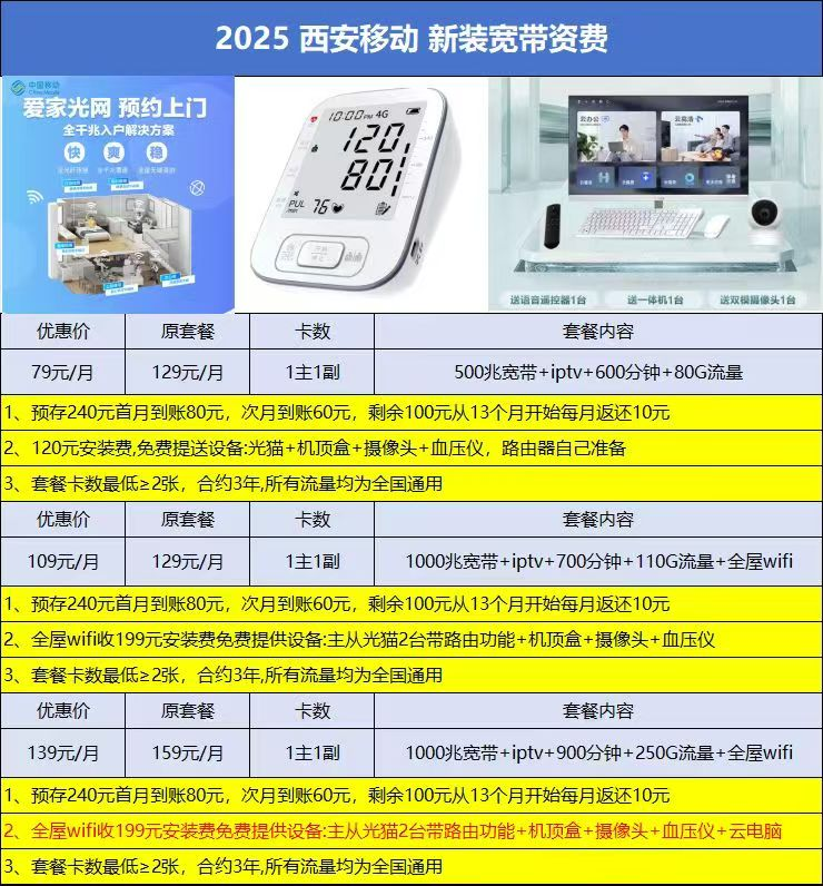 西安移动宽带办理安装2025年11月新套餐 FTTR全屋光纤 全屋覆盖 全市免费上门办理